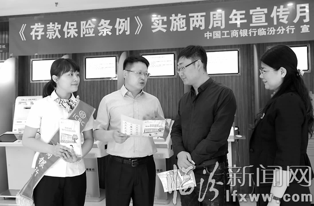 臨汾新聞網訊 近日,在工商銀行臨汾銀苑支行,工作人員在為市民講解存款保險條例的有關知識。連日來,工商銀行臨汾分行以營業大廳為宣傳陣地,通過漫畫圖表、電子屏以及現場咨詢臺的形式,向廣大市民解讀《存款保險條例》中有關制度設定和存款保險的知識,確保客戶存款安全。
