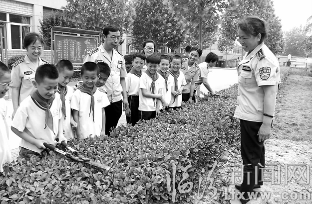 臨汾新聞網訊 近日,市城市綠化一隊開展了“愛綠護綠進校園”活動,旨在培養小學生從小養成愛綠護綠的好習慣,讓學生們了解愛綠護綠的重要性,爭做保護環境的小衛士。圖為工作人員正在為堯都區郭村小學的學生講解示范如何修剪綠籬等。