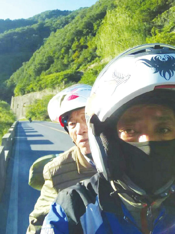 “每次騎行歸來,我都會把一路的風光和見識說給父親聽,父親每一次都會認真聽我說完,眼神之中滿是向往,直到去年,父親突然對我說,下一次騎行出去,能否把他也帶上。”周勝虎說,聽到父親這樣說,他一時不知道如何回答,本來帶著父親出去玩一玩也是應該的,可騎著摩托車帶上父親,這就有點困難了,畢竟老父親已經83歲了。