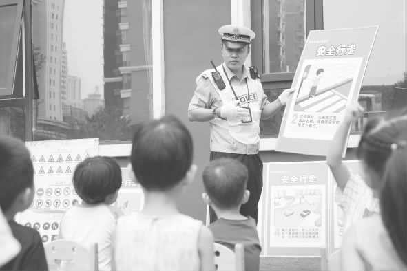 為了最大限度調(diào)動(dòng)幼兒的學(xué)習(xí)熱情,大隊(duì)民警精心籌備,悉心設(shè)計(jì)了多個(gè)教學(xué)環(huán)節(jié),力求讓幼兒學(xué)會(huì)、牢記出行安全常識(shí)并能在生活中運(yùn)用。活動(dòng)中,民警針對(duì)學(xué)齡前兒童認(rèn)知和接受能力,利用通俗易懂、生動(dòng)形象的語言教小朋友們看懂信號(hào)燈和交通指揮手勢(shì),以及如何行走斑馬線,提醒小朋友們?cè)诔俗煌üぞ吆屯獬銎陂g要自覺遵守交通法律法規(guī),不要在馬路上打鬧、過馬路時(shí)要走斑馬線,并帶領(lǐng)孩子們一起學(xué)唱交通安全兒歌。