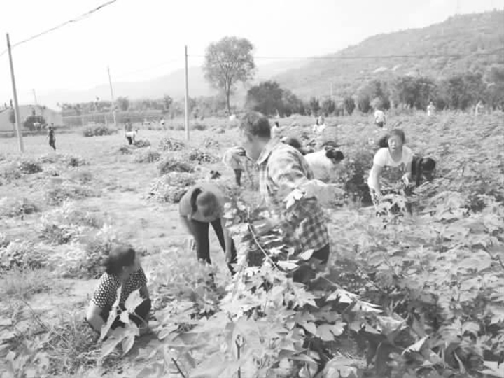 為讓義務勞動落到實處,村里將10畝地設為集體主義思想體驗田,成為義務勞動體驗區,凡在村里的村民,只要喇叭一響,半個小時內,一百多人就集中起來,上有70多歲的老人,下有年齡不等的娃娃,扛上紅旗,浩浩蕩蕩開進地里,成了黎掌村的一道亮麗風景。