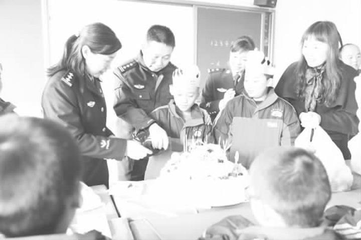 臨汾新聞網訊 11月26日是臨汾惠祥學校貧困孤兒宋藝博涵的生日,令他意想不到的是,公安“爸爸”、公安“媽媽”專程帶著生日蛋糕、水果等,給他辦了一個難忘的集體生日會!生日會上,堯都公安民警寄語孩子們要互相幫助、互相學習,將來成為有用之材,也希望學校、社會多給孩子們呵護和幫助,為他們撐起一片天。