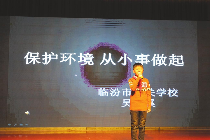 “我們共同努力,臨汾的天空將湛藍深遠,臨汾的空氣將清新甜潤,臨汾的樹木將郁郁蔥蔥……”小選手們精巧地編排、鏗鏘的聲音、有力的呼吁深深感染著在場觀眾,引導和帶動更多人行動起來,共同為保衛藍天奉獻力量。