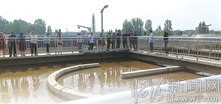 “污水進入廠區后,依次經過粗格柵及提升泵房、細格柵及曝氣沉砂池、生化池、二沉池及配水井、高效沉淀池、活性砂濾池和接觸消毒池等水處理構筑物,達到城鎮污水一級A排放標準后排放汾河。”市第三污水處理廠廠長霍強對污水處理的工藝流程進行了簡單概況,并帶領大家實地觀看了污水處理的全工程。