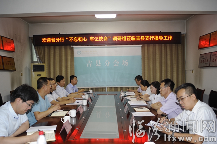臨汾新聞網訊 盛夏七月,酷暑難當。近日,農行山西省分行高級專家武源軍一行四人,不畏炎熱、輕車簡從,在臨汾分行黨委班子的陪同下,開展“不忘初心、牢記使命”主題教育專題調研。