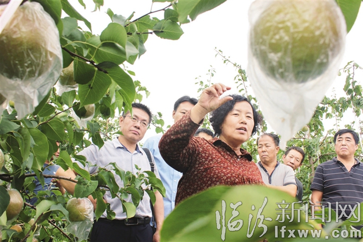 8月份是玉露香梨的著色期。8月22日,在汾西縣后加樓村綠陽合作社的梨園里,省農科院專家郭黃萍正在給果農進行著色期的專業技術指導。