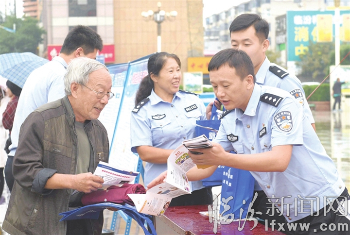 圖為市公安局的青年志愿者在市區平陽廣場為市民講解網絡電信詐騙違法犯罪的有關知識。
