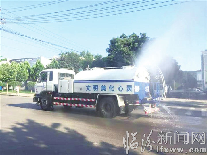 臨汾新聞網訊 今年以來,古縣結合道路實際情況,采取保潔人員“一掃多保”作業、洗掃車每天固定頻次洗掃作業、人機結合沖洗路面等措施,有效降低了道路揚塵污染。圖為灑水車在路上作業。