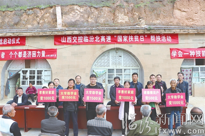 10月17日是全國第六個“扶貧日”,山西交控集團臨汾北高速公路分公司在永和縣打石腰鄉郭家山村開展“盡銳出戰、決戰決勝”扶貧日主題活動,向評選出的道德模范、孝善好家庭及大學生新生頒發獎金6500元,向郭家山道德銀行捐贈衣物和鞋100套。