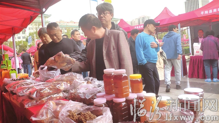 10月19日—20日,在山西貧困地區農特產品“五進”對接承銷活動上,我市產品“紅了”“火了”,在商家的好評和群眾的追捧中,不僅銷售一空,而且幾次補貨,不僅參與企業獲利,而且在省城打響了“臨汾品牌”。圖為消費者在古縣展位挑選產品。