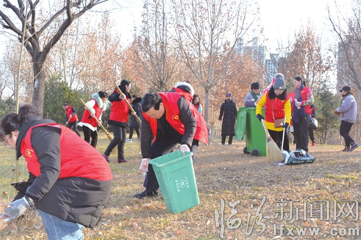 臨汾新聞網訊 12月26日下午,臨汾監獄學雷鋒志愿服務小分隊,在堯都區澇洰河公園,開展“共建生態文明、共享綠色未來”為主題的志愿服務活動。活動中,志愿者們耐心、細致地清理著落葉、雜物,傳播著保護城市環境衛生的理念,弘揚“我為人人、人人為我”的志愿服務精神。(岳亨全)