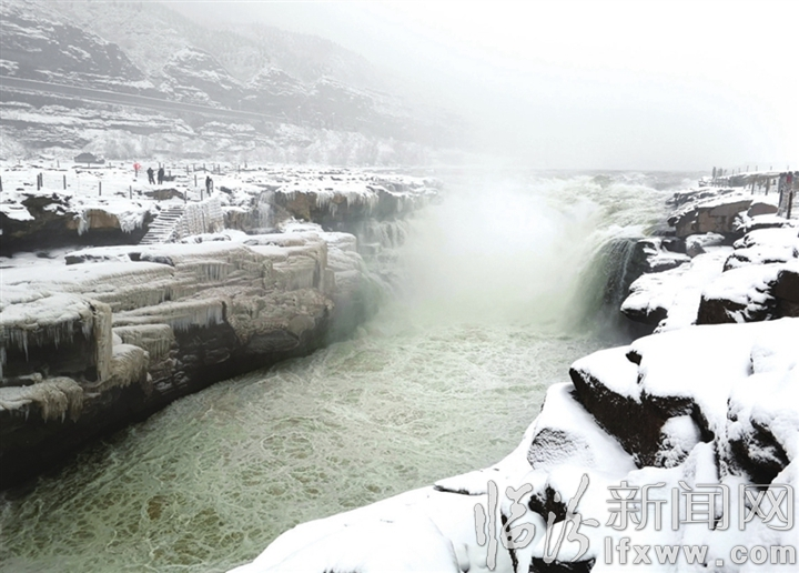 ① 1月5日,黃河壺口景區(qū)迎來新年第一場雪,雪中的壺口瀑布銀裝素裹,吸引了眾多游客前來觀賞。
