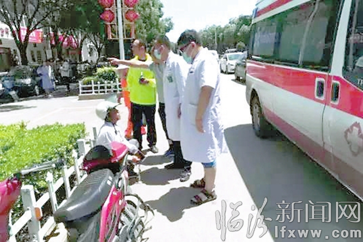 待救護(hù)車到達(dá),民警配合醫(yī)護(hù)人員把老人攙扶上救護(hù)車,民警開警車一路護(hù)送到醫(yī)院。