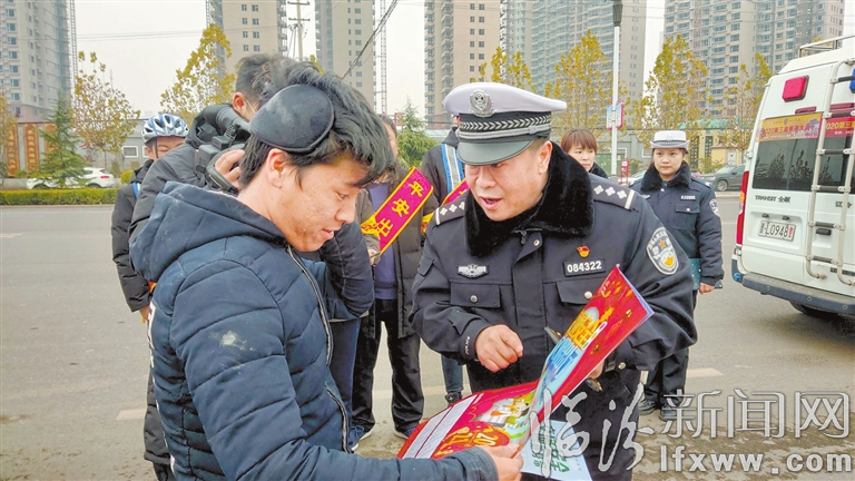 臨汾新聞網訊 12月2日是第九個“全國交通安全日”。為積極倡導“生命至上、安全第一”理念,當日上午,堯都區公安局交警大隊聯合五個行業交通志愿者走上街頭開展以“知危險會避險,安全文明出行”為主題不文明交通行為宣傳勸導活動,大力倡導安全文明出行理念,從源頭上預防和減少道路交通事故發生。