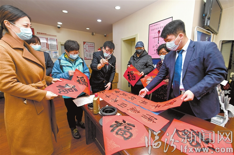 臨汾新聞網訊 連日來,工商銀行臨汾分行師大支行開展了“迎春送福”書寫春聯迎新春活動,山西師范大學書協的老師們揮毫潑墨,將一副副寫滿祝福的春聯送到市民手中。
