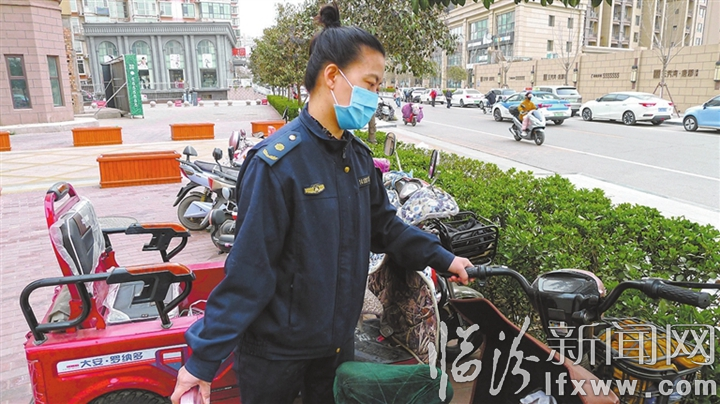 “師傅,請把電動車停放到指定位置,謝謝配合!”……3月11日早7時,經歷了一夜雨水的洗禮,空氣中彌漫著陣陣涼意,市區向陽西路上,市城市管理局綜合行政執法女子中隊負責人柴麗紅帶著隊員們早已投入工作中。