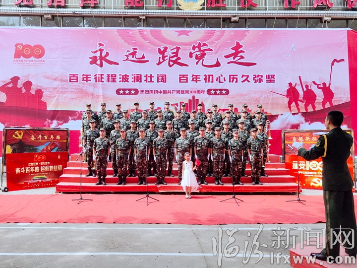 6月29日,該支隊組織舉行“永遠跟黨走”歌詠比賽,從基層選拔出的11支代表隊,通過視頻傳輸、現場直播形式參加比賽。《請你檢閱》《人民至上》《勝戰之問》《不忘初心》等一首首氣勢蓬勃、振奮人心的主旋律歌曲,將武警官兵忠誠為黨的決心和敢打敢拼的精神風貌淋漓展現。