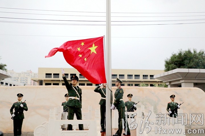 7月1日早6時20分,部分武警官兵齊集在該支隊國旗臺前,鮮艷的五星紅旗伴隨著雄壯的《義勇軍進行曲》冉冉升起。武警官兵莊嚴肅立,向國旗行注目禮、齊唱國歌。嘹亮的歌聲表達了他們對黨和國家的熱愛。