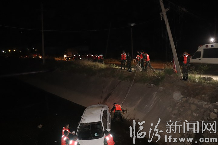 臨汾新聞網訊 5月3日22時左右,一輛白色轎車途經堯都區劉村鎮劉南村附近時,不慎掉入路旁水渠,危急時刻,正在附近執勤的武警官兵火速出動。