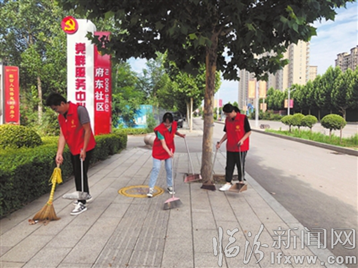 臨汾新聞網訊 進入假期以來,我市各個社區(qū)積極動員轄區(qū)內的大學生參與社區(qū)環(huán)境維護活動,引導居民樹立“小區(qū)是我家,美麗靠大家”的觀念,深入推進環(huán)境衛(wèi)生治理,助力創(chuàng)建省級文明城市。圖為7月11日,堯都區(qū)段店鄉(xiāng)府東社區(qū)組織志愿者清掃街道。