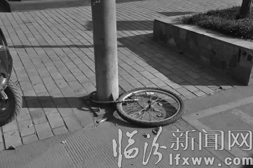 “這個車輪在這兒已經好幾天了,自行車車架被偷了。”記者在走訪附近幾家商戶時一商店的店主告訴記者,究竟是哪天的事,因為時間有點長記不起來,但車主一直沒有出現,小偷太缺德了,什么偷盜的辦法都能想出來,鎖在桿子上也要把自行車拆開來偷,看來以后得多注意了。”