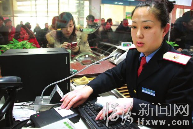 鐵路部門的工作人員正在售票。 記者 郝海軍 潘華玲 攝