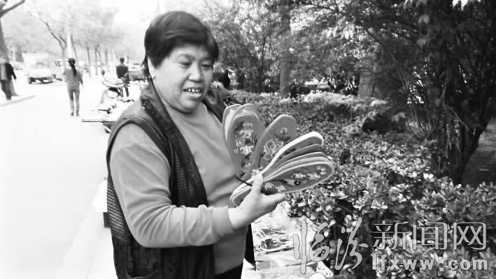 在市區向陽路人行道內的某段花池邊上就是石老人“固定”位置。一個大包,用來裝各種顏色的鞋墊,小包內裝著寶寶的鞋子。剛巧,一位趙女士前來給石老人打招呼,兩人好像很熟悉的樣子,她告訴記者,她們家人的鞋墊都是在石老人這里購買的,都穿了很多年了,布料厚實,穿上還很透氣。價格也實惠,周圍的居民都喜歡在這里買。“我外甥去年出生前的衣服和鞋子都是在這里給預定的,她做的東西我們都很滿意。”路過的孫女士說,石老人不僅納鞋墊,還經常做一些寶寶的衣服和鞋子。