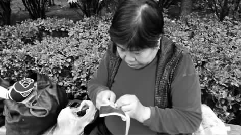 初次見到石老人,她慈眉善目的,只見她在一針一線的縫制寶寶的鞋子。經歷歲月的流逝,已經讓石老人的腰板不再那么的挺直;12年的風吹日曬,讓石老人的臉和手變得很干枯,尤其在她那雙手上,看到了滄桑,由于常年都在納鞋墊,雙手長滿了老繭,有幾個關節甚至都有些變形,只要遇到天氣不好時,就會隱隱作痛,但老人終究不肯放下手中的活兒,“要干一行愛一行。凡是有苦必有甜,我會堅持納鞋墊,多做善事,讓更多的顧客‘腳底’舒坦。”石老人的這份積極向上、心地良善的精神,深深感動了記者……