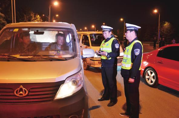 “同志,請出示您的駕駛證和行車證。”4月24日晚8時,堯都區公安局交警大隊結合近期全市公安交警開展的道路交通安全大檢查活動,針對酒后駕駛、涉牌涉證等交通違法行為,對轄區內5個重點路口進行設卡夜查。記者看到,在夜色籠罩的堯都區彩虹橋西、鑼鼓大橋等路口執勤點,警燈閃爍,交警們手持閃光指揮棒和酒精檢測儀等設備,對過往車輛進行檢查。當晚,大隊共出動警力120人,警車12輛,經過兩個小時的突擊夜查,共查獲各類交通違法行為11起。交警部門表示,隨著天氣回暖,酒駕、涉牌涉證等交通違法行為進入高發時期,今后大隊還將不定期、不定點地進行突查,及時發現、制止和查處酒后駕駛等違法行為,預防和減少因酒后駕駛導致的道路交通事故的發生。