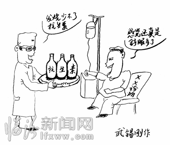 記者在采訪中發現,目前很多臨床醫生特別是基層醫療單位的醫生,亂用抗生素的狀況非常嚴重。特別是在一些鄉衛生所、小診所,凡是有了頭疼發熱,往往都要“掛水”。醫院里基本每一個科室、每一位專業的醫生都在使用抗生素。