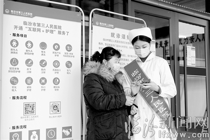 臨汾新聞網訊 12月10日,市第三人民醫院的護士在幫助一位患者家屬用手機下載“互聯網+護理服務”小程序。