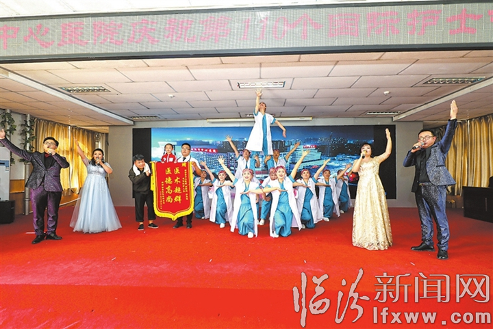臨汾新聞網訊 5月7日,臨汾市中心醫院舉辦了文藝匯演,醫護人員載歌載舞慶祝國際護士節。圖為手術室醫護人員正在表演節目。