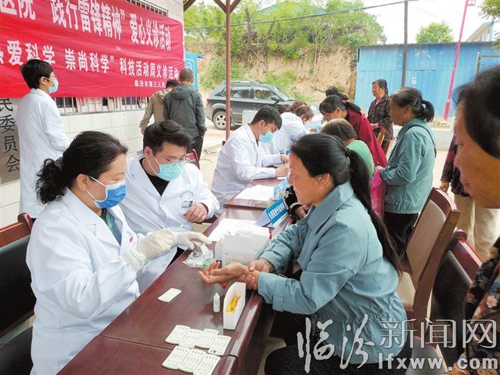 臨汾新聞網(wǎng)訊 5月26日,市第三人民醫(yī)院的醫(yī)務(wù)人員來到大寧縣太古鎮(zhèn)坦達(dá)村,開展“踐行雷鋒精神”愛心義診活動,受到當(dāng)?shù)卮迕駳g迎。