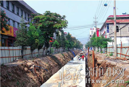 自5月份開工以來,工程面對著接踵而來的雨季,為了防止雨水進入基槽,影響工程及沿線居民安全,該縣專門成立縣城防汛領導組,并制訂應急預案,設立24小時巡查制,不斷加強值班巡視和隱患排查,并配齊應急隊伍,為防汛做好了準備。整個汛期,一旦出現強降雨,城建部門及施工單位全員上崗,迅速趕往安全隱患點,動用大型機械及應急水泵進行險情排除,并調運水泥、木材對基槽兩側、高壓電線桿進行加固支護,打了一場艱巨的護城保衛戰。他們克服天氣條件帶來的重重困難,讓工程不折不扣地向前推進。