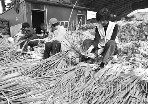 批發商在整理大蔥。記者 郝海軍 潘華玲 攝