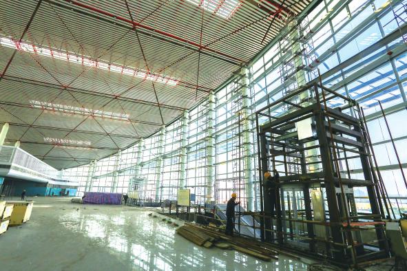 在機(jī)聲轟鳴中,大型挖掘機(jī)正在清理土石;在井然有序中,監(jiān)管人員對剛剛?cè)雸龅脑牧蠂?yán)格驗收;在一絲不茍中,施工人員正將管線敷設(shè)到位;在相互配合下,一根根龍骨正在高空吊裝;在粉塵密布下,工人師傅將切割好的地磚輕輕鋪下……在航站樓的各個區(qū)域,在站前廣場的多條道路,處處都有施工人員的身影,處處都是一幅緊張施工的場景。這是10月27日,記者走進(jìn)臨汾民航機(jī)場項目建設(shè)現(xiàn)場看到的一幕。