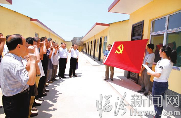 臨汾新聞網訊 6月28日,艷陽高照,記者來到市扶貧辦幫扶的吉縣壺口鎮留村,看到光伏電站建設完備,村容村貌煥然一新,一排排移民新居整齊劃一……在這個火紅的七月,他們迎著鮮紅的黨旗,頂著火熱的陽光,全體黨員干部與貧困村的黨員們面對黨旗,重溫入黨誓詞。這聲音莊嚴肅穆,蕩氣回腸……