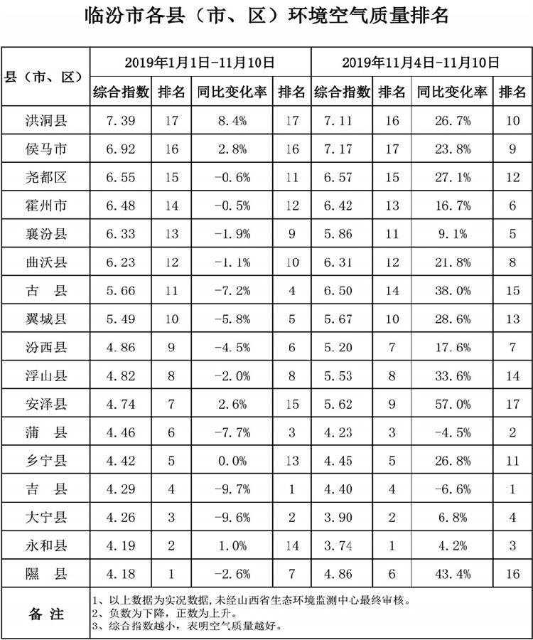 1、以上數(shù)據(jù)為實(shí)況數(shù)據(jù),未經(jīng)山西省生態(tài)環(huán)境監(jiān)測(cè)中心最終審核。 2、負(fù)數(shù)為下降,正數(shù)為上升。