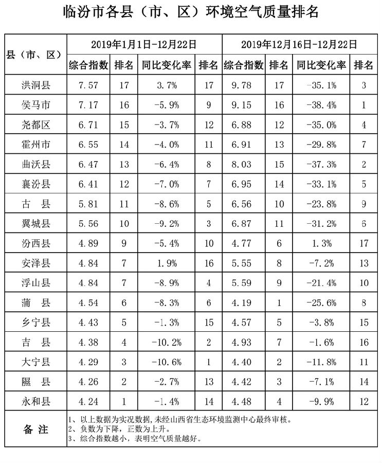 1、以上數(shù)據(jù)為實況數(shù)據(jù),未經(jīng)山西省生態(tài)環(huán)境監(jiān)測中心最終審核。 2、負(fù)數(shù)為下降,正數(shù)為上升。