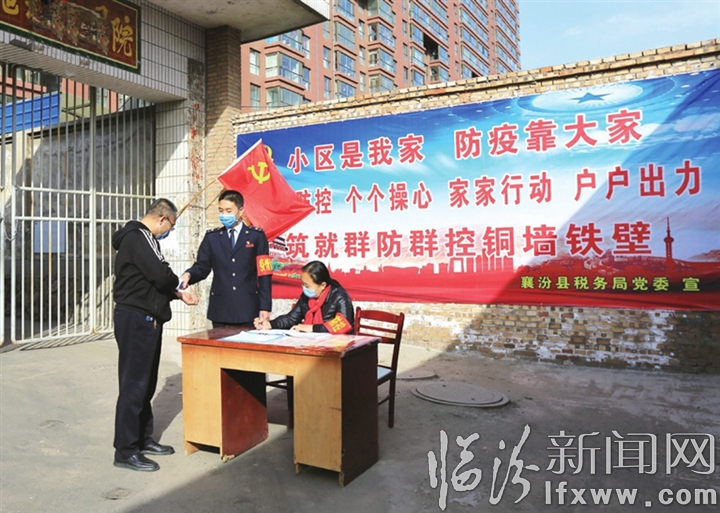 臨汾新聞網訊 疫情防控期間,國家稅務總局襄汾縣稅務局稅務干部下沉社區開展疫情防控工作。圖為該局稅務干部正在為居民檢測體溫。(梁凱)