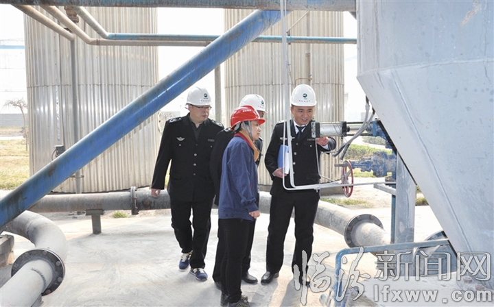 環保執法人員對企業污染處理設施進行檢查