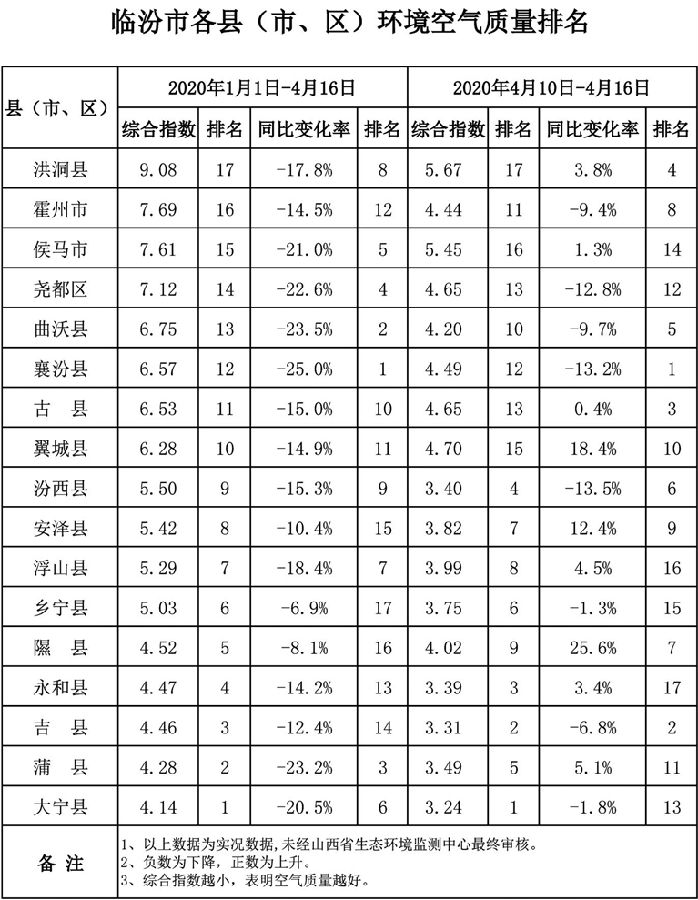 3、綜合指數(shù)越小,表明空氣質(zhì)量越好。