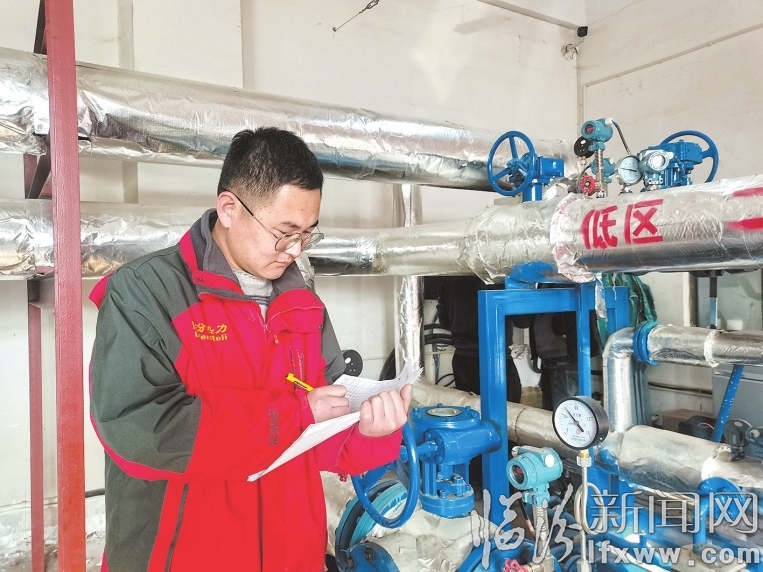 上午11時20分,記者在市區西華公館小區的換熱站見到了左晉安,他身著紅色工作服,正在認真檢查供熱設備。