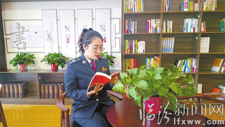 圖為洪洞縣稅務(wù)局干部張欣在誦讀紅色家書。王澤昊 攝