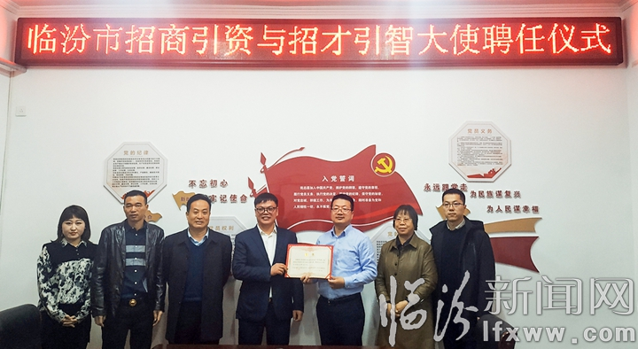 臨汾新聞網訊 (記者 柴亞虹)3月23日,山西省浙江企業聯合會會長彭衍吾正式受聘為臨汾市招商引資與招才引智大使。