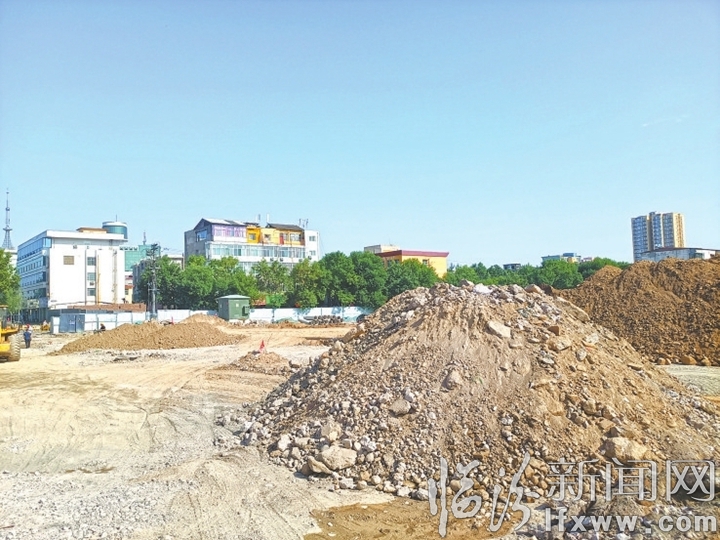 解放路立交橋建設(shè)工地土方露天堆積。