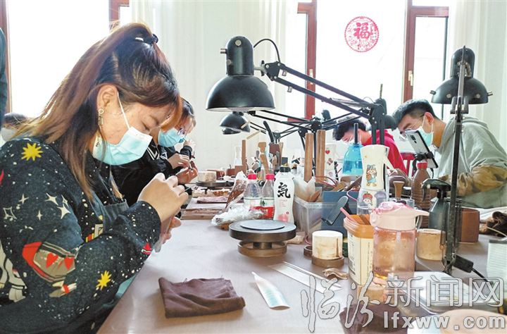 臨汾新聞網訊 紫砂陶小鎮是鄉寧縣生態文化旅游示范區內實施的重大項目之一,現已完成了道路橋梁、管網工程、河道治理一期工程、服務中心、25套大師工作室5項工程。整個項目建成后將成為集紫砂陶文化傳承體驗、創意工坊、旅游休閑、文化交流、商務會議、技能培訓及生態居住于一體的產業綜合體,屆時將為縣域經濟高質量發展作出積極貢獻。圖為日前大師工作室的工作人員正在制作紫砂壺。