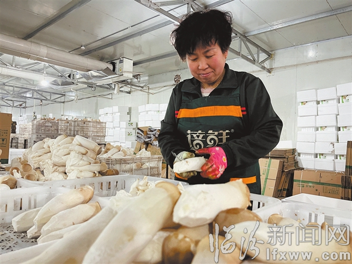 臨汾新聞網訊 山西蓓鮮農業科技有限公司通過“工業化”模式生產杏鮑菇,生產過程全部采用自動化流水線作業,可年產杏鮑菇1萬余噸。同時,生產杏鮑菇的菌棒全部由廢棄秸稈制成,產出杏鮑菇后的廢菌棒將制作成有機肥料,實現變廢為寶、循環利用。圖為近日工作人員正在對杏鮑菇進行分揀包裝。記者 柴云祥 攝