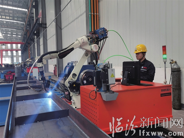臨汾新聞網訊 山西中部智造科技有限公司主要生產PS構件、橋梁鋼箱梁、風力發電塔筒、密閉運輸金屬管道、太陽能光伏板組件等產品,是一家標準化設施、智能化生產、信息化管理、裝配化應用的現代工業化裝配式建筑企業,每年可生產各類鋼構件10萬噸,年產值10億元,帶動就業400余人。圖為近日技術人員正在智能化生產車間監控智能組焊機器人的焊接作業。