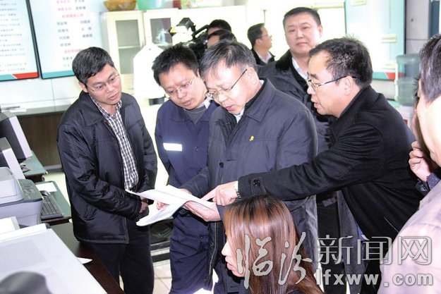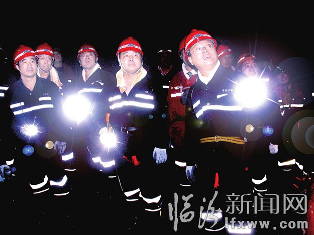 市委常委、副市長李東洪(右二),市長助理、市煤炭工業局局長王延峰(右一)深入礦井一線檢查安全工作